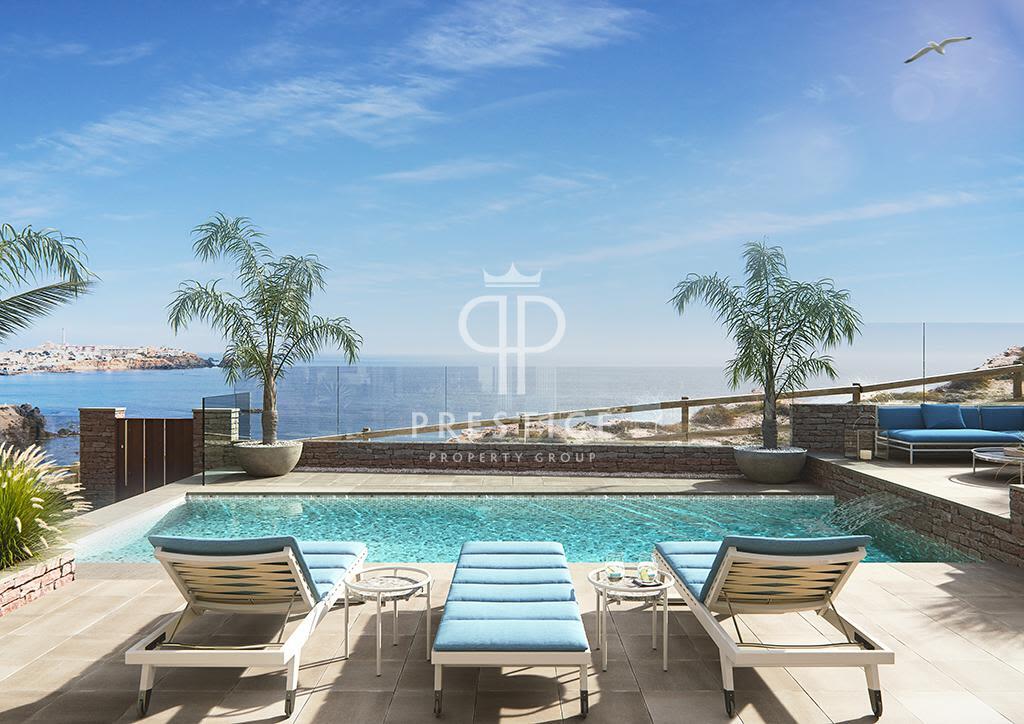 An exceptional new 3-bedroom luxury architect-designed villa with pool and garden, enjoying breathtaking sea views from its waterfront location in Cabo de Palos, Murcia. Designed by Swiss architect Massimo Di Caudo, this exclusive property features clear, cubic and functional lines set in a unique coastal enclave at Cala Medina. The villa offers 260m² of living space on a 500m² plot with a private heated 9x4m pool, large terraces, and floor-to-ceiling windows throughout.